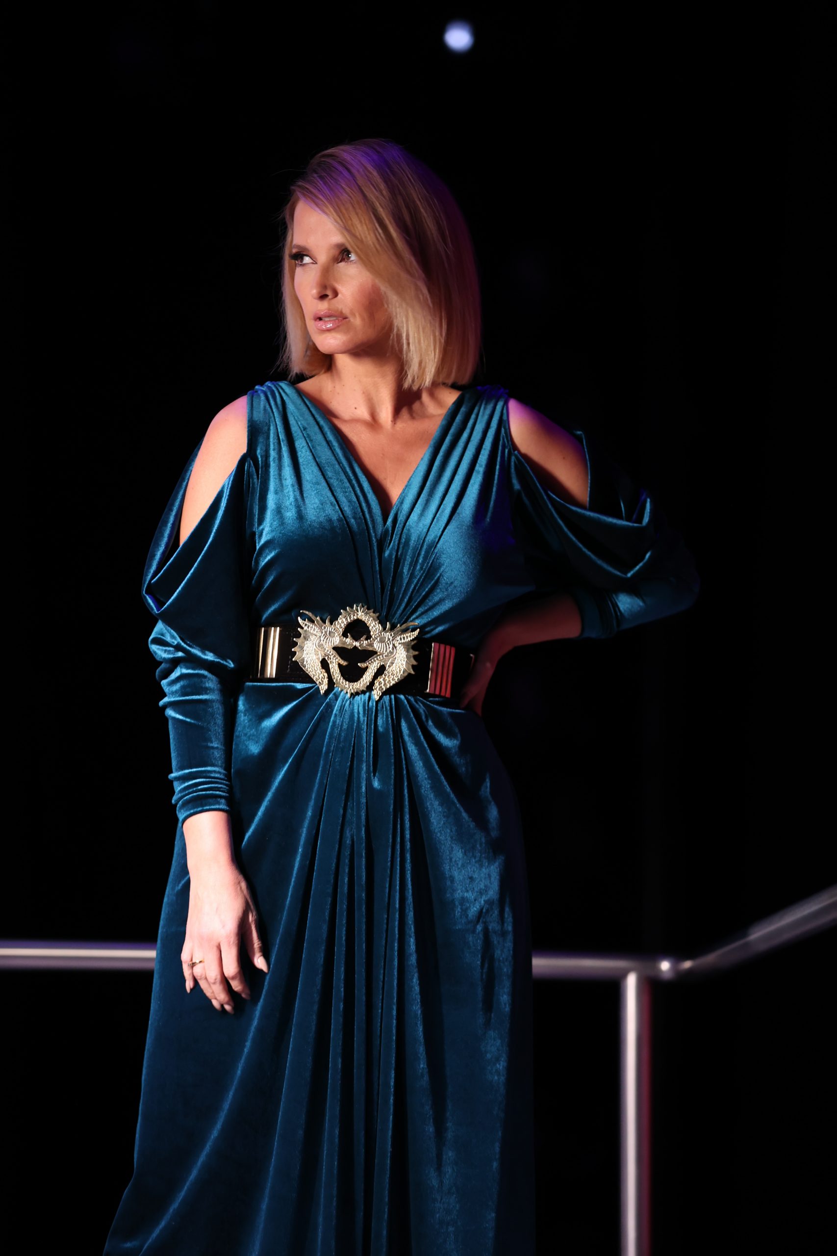 No passado domingo, Cristina Ferreira usou um vestido de veludo azul com um cinto que deu um toque mais imperial ao look. A arte estava nos sapatos, uma assinatura de René Coavilla. A gala começou com a desistência de um dos moradores da casa, Rúben da Cruz. As saudades da família, principalmente do filho recém-nascido, não o permitiram manter-se em jogo. Logo de seguida, conheceu-se duas novas concorrentes. E, por fim, saiu Cátia Basílio, expulsa pelos portugueses com 51% dos votos.