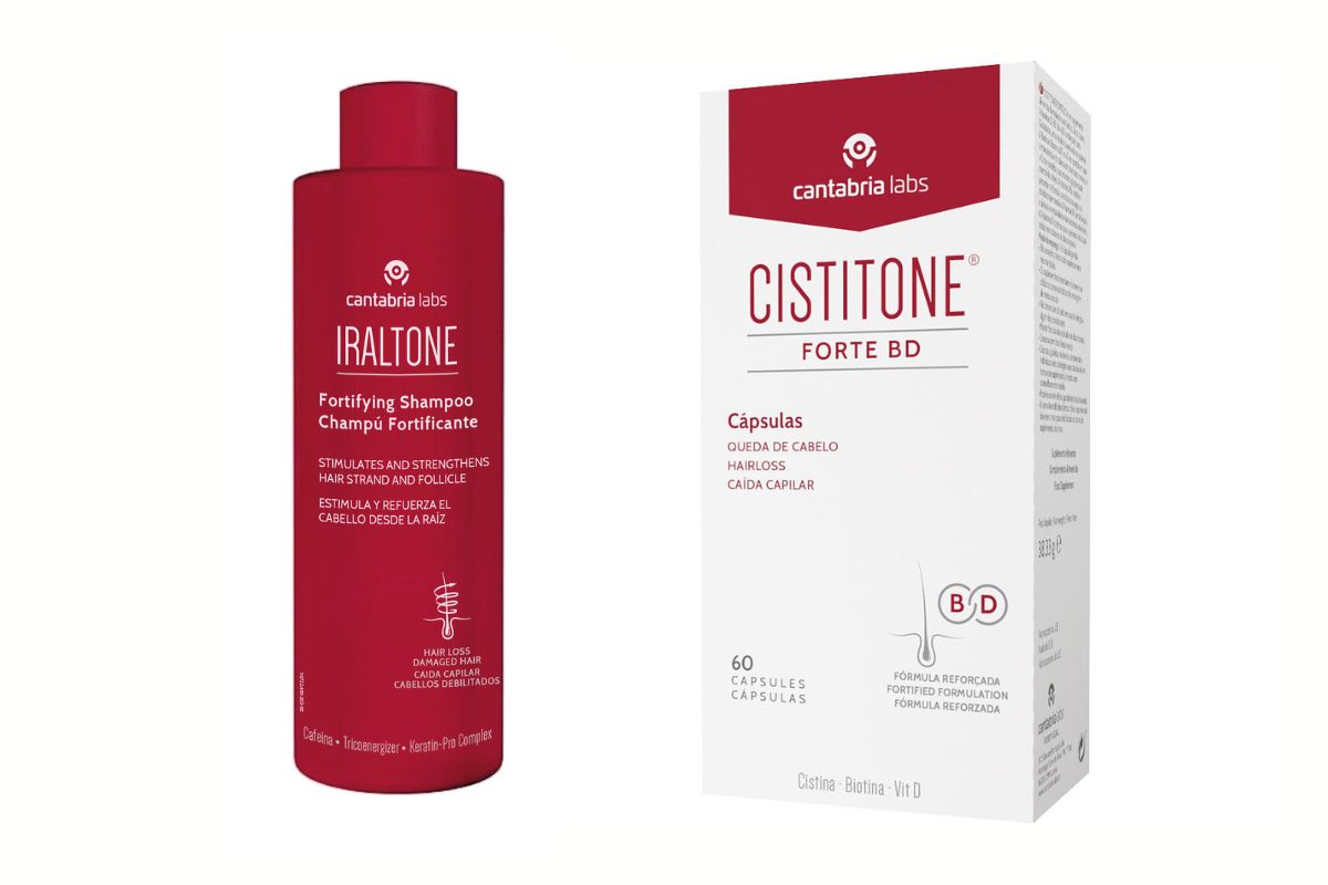 Cistitone Forte BD, suplemento alimentar para o cuidado intensivo face à queda de cabelo, 60 cápsulas, 29,28€ Iraltone, champô fortificante, 400ml, 18,63