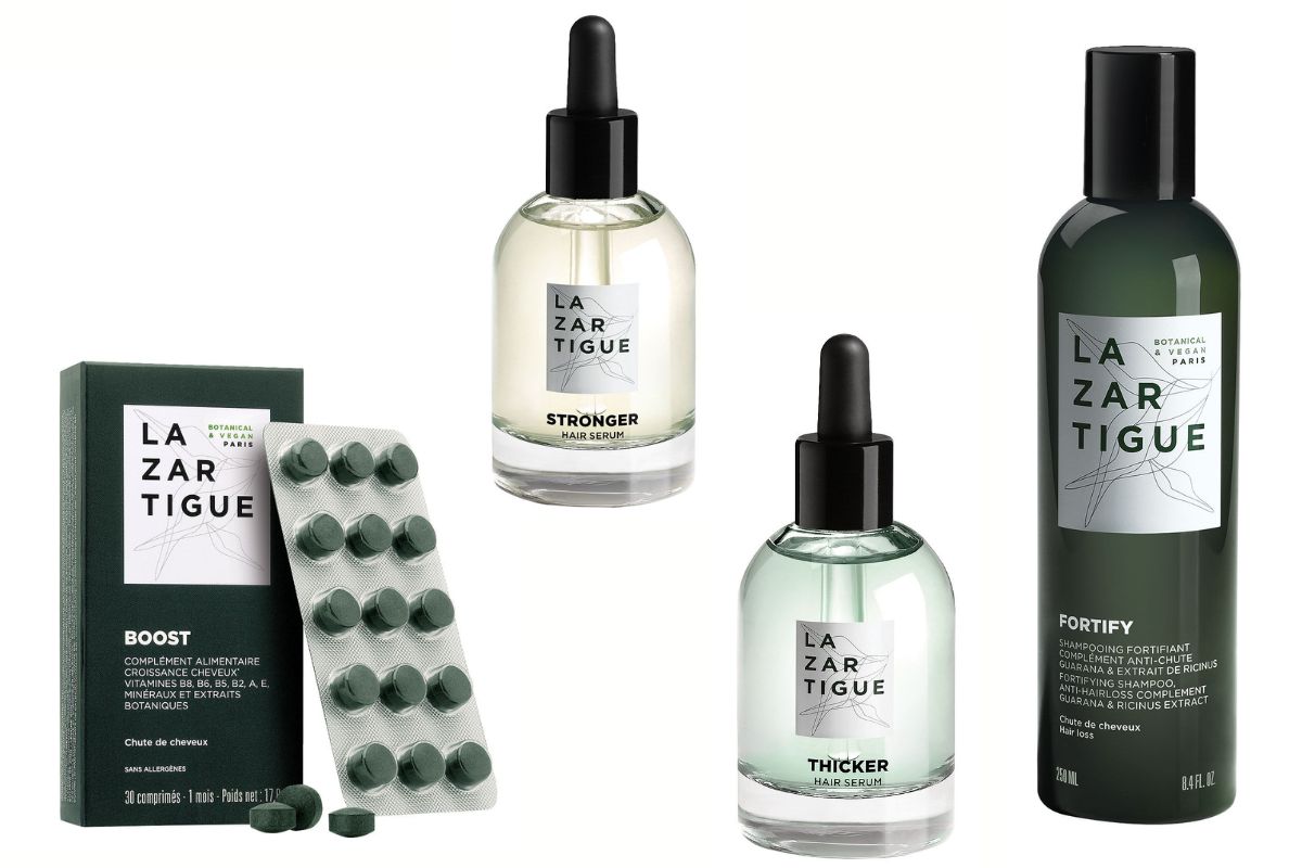 Boost, suplemento antiqueda, 30 comprimidos, 25€ Champô fortificante, 250ml, 19,50€ Eco Refill, 500ml, 29,90€ Thicker, sérum redensificante, 50ml, 59€ Stronger, sérum fortificante, 50ml, 59€