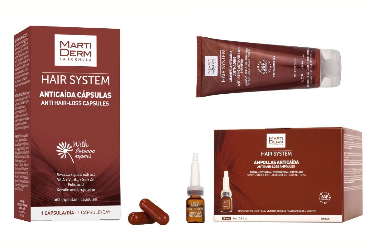 Cuidado antiqueda reacional (mulher), 12 ampolas, 34€ Cuidado antiqueda progressivo (mulher), 12 ampolas, 44€ Cuidado antiqueda severa (homem), 12 ampolas, 44€ Champô de cuidado densificante, 250ml, 12,90€ Suplemento alimentar cabelo e unhas, 120 cápsulas, 49€