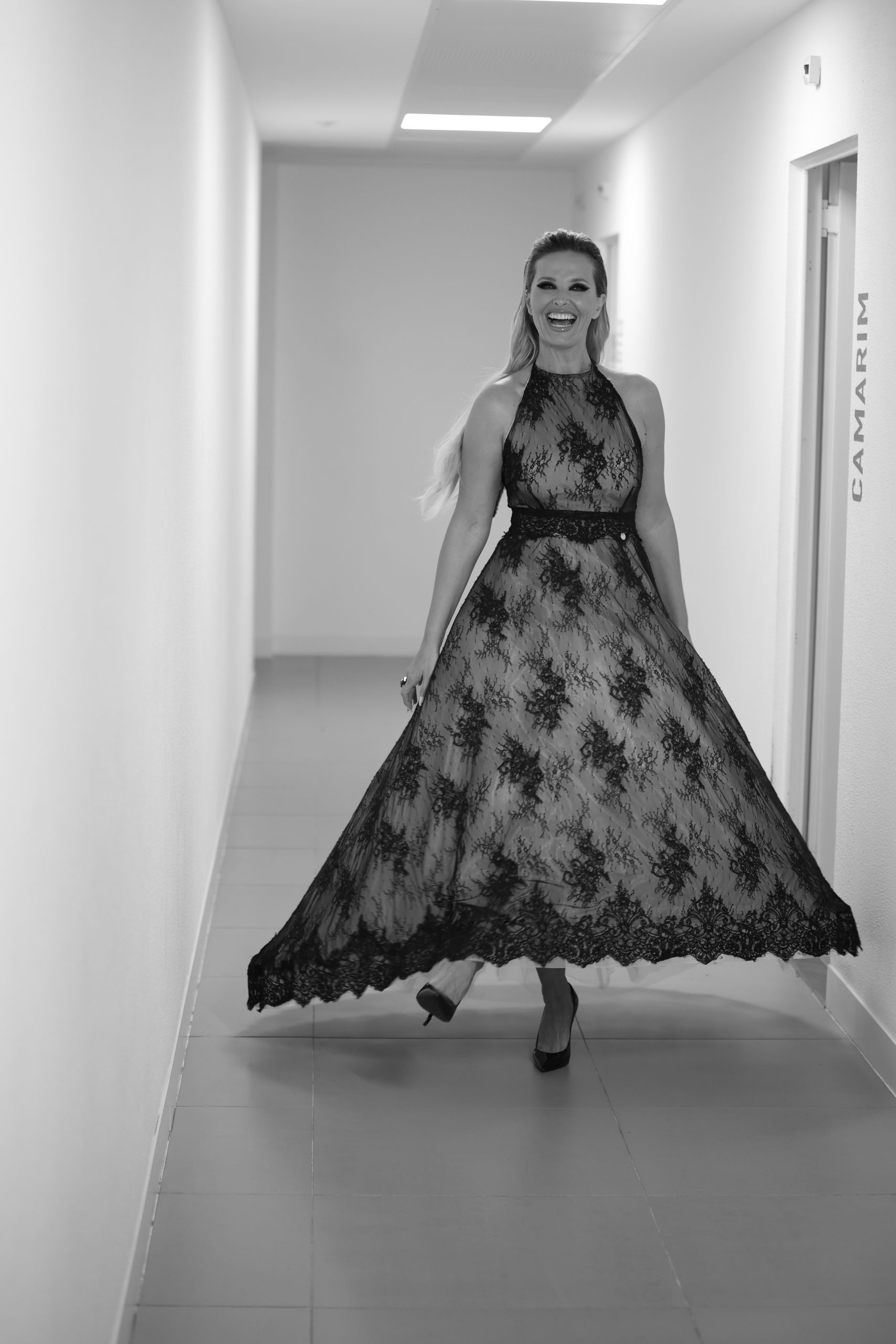 Para a décima gala, Cristina Ferreira apresentou-se ao público com um vestido de renda preto com assinatura da designer Andreia Lobato.