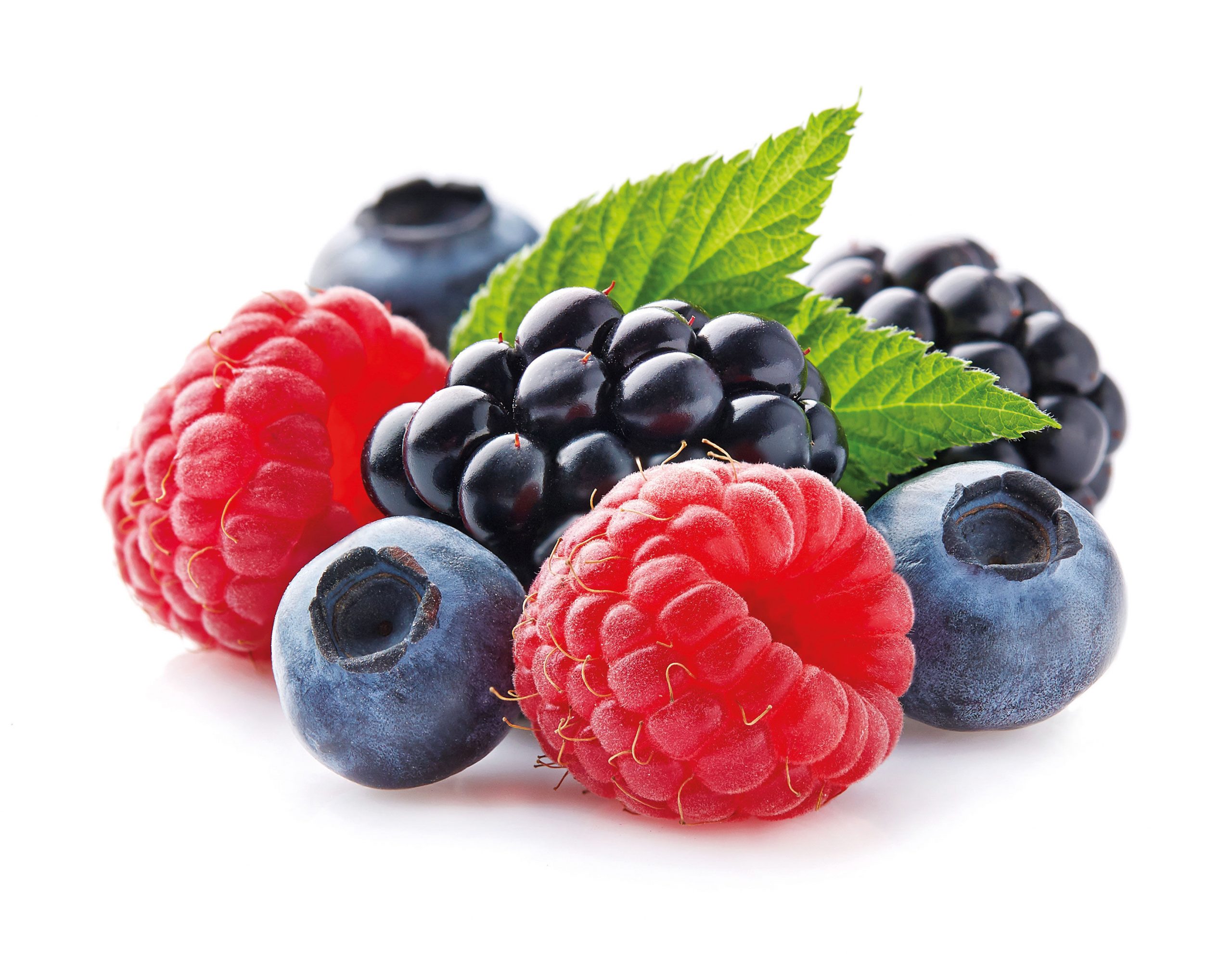 Os frutos vermelhos como as framboesas, os mirtilos, as amoras e os morangos são ricos em fibra e vitamina C, além de conterem uma série de componentes antioxidantes e anti-inflamatórios.