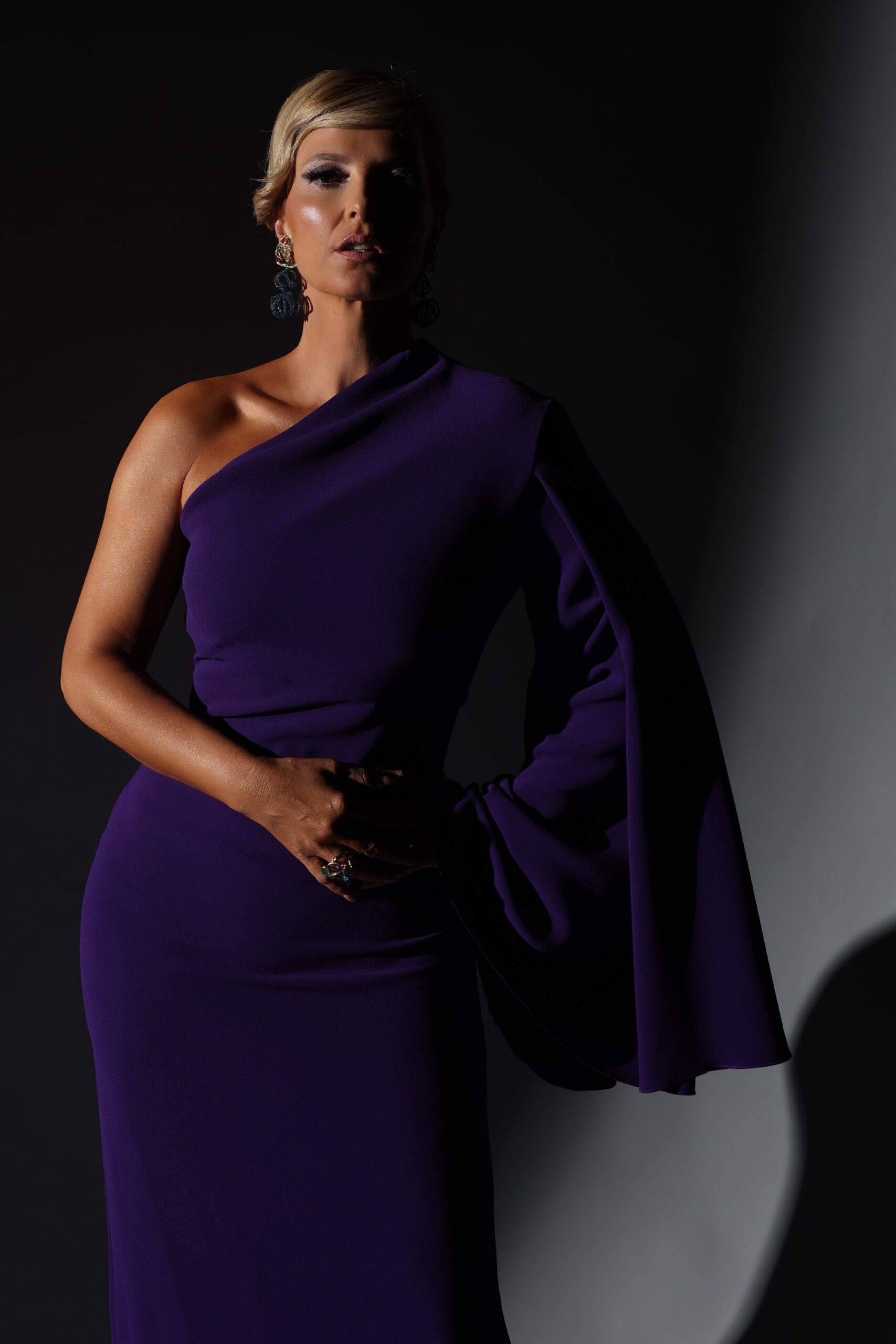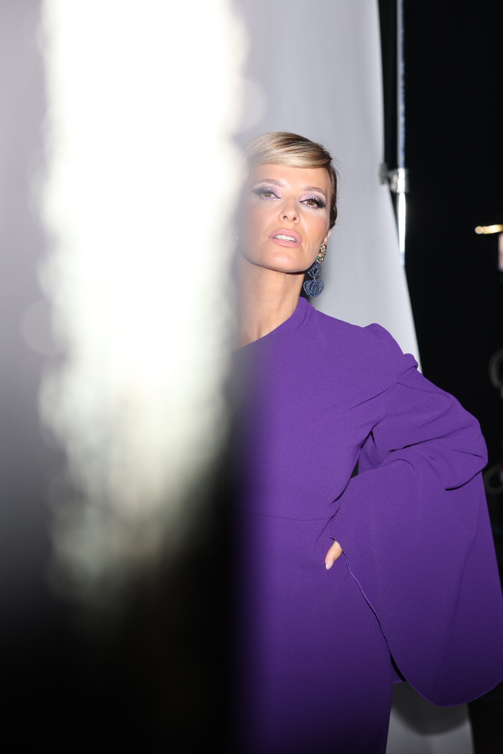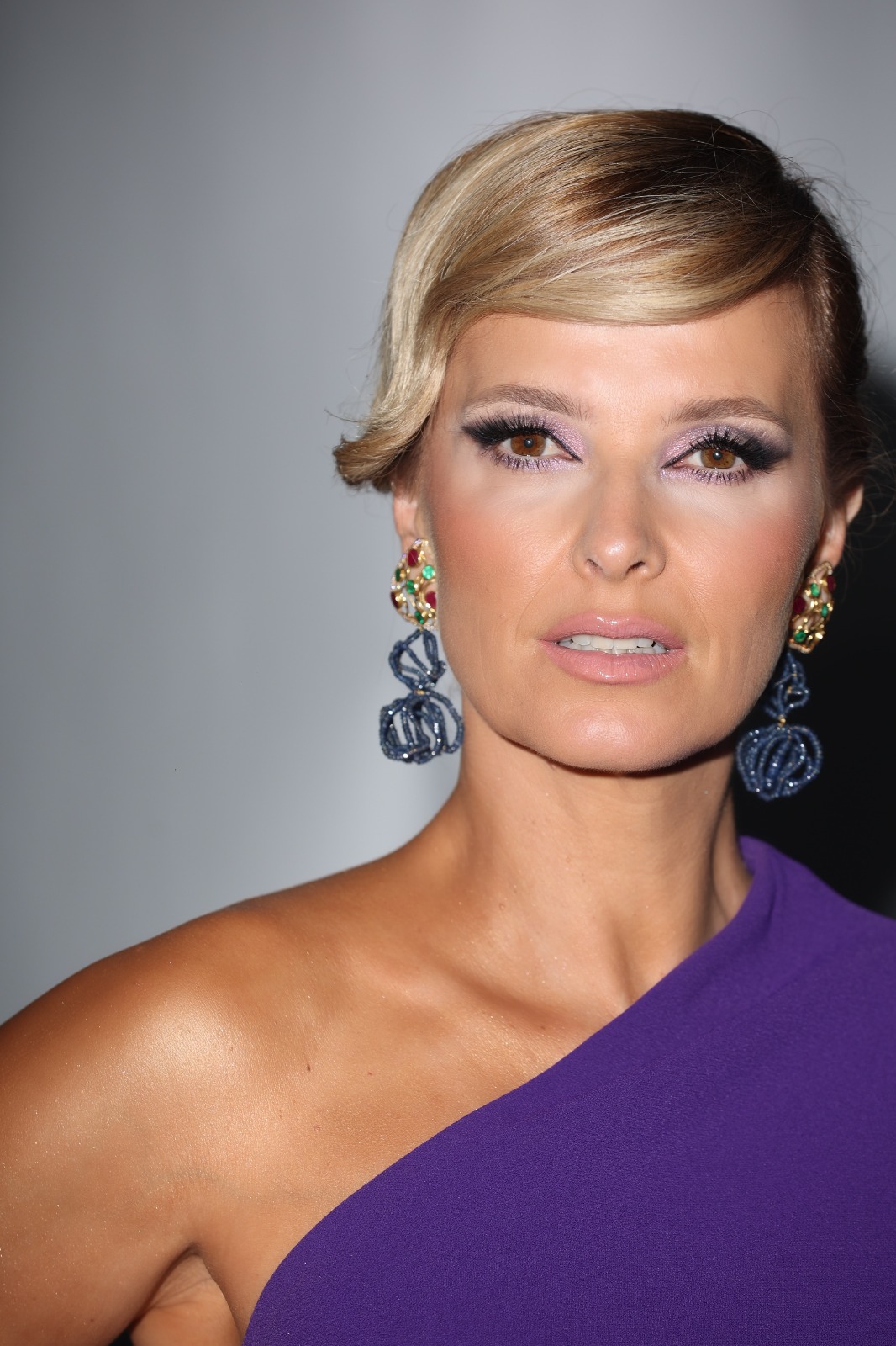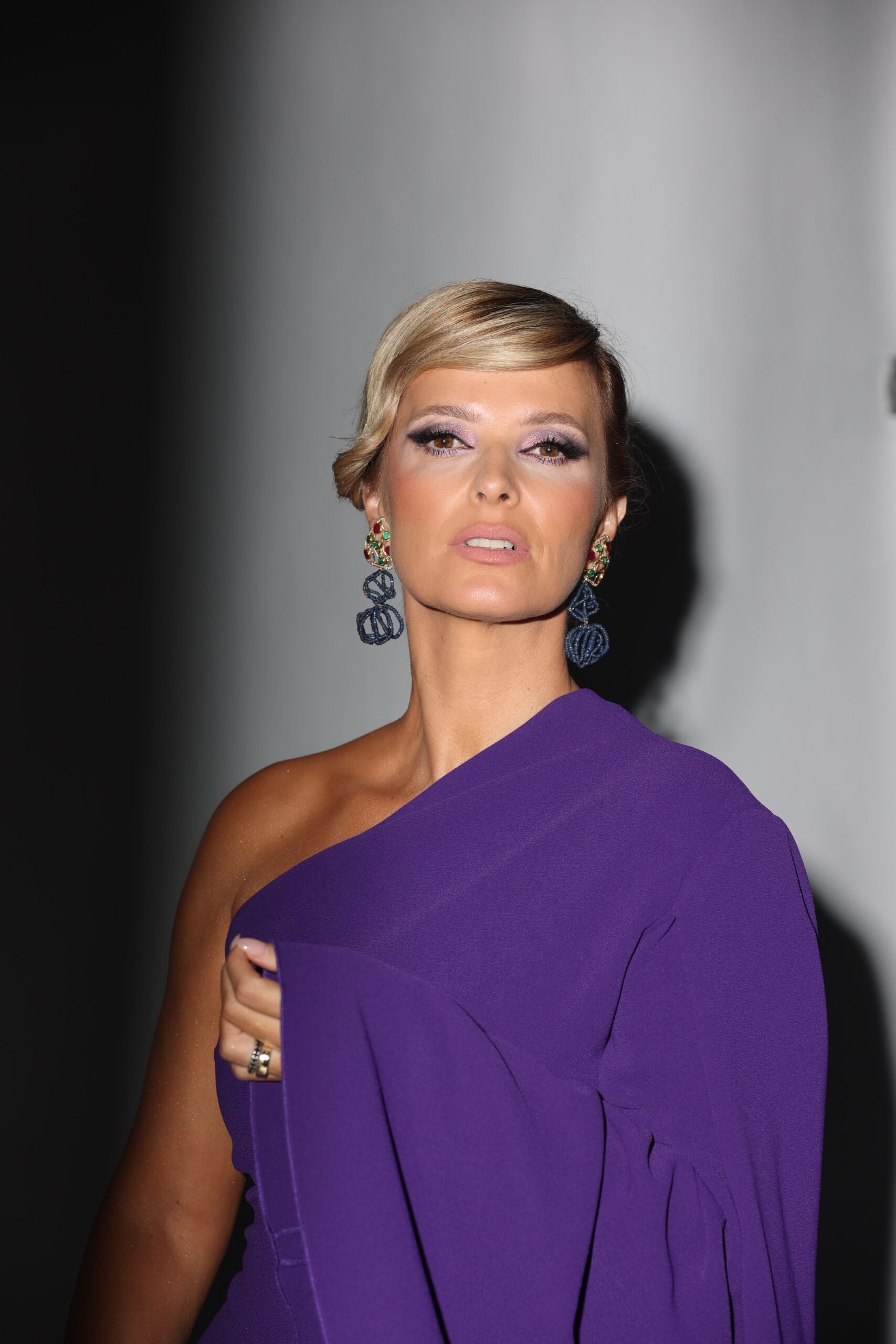 Para esta gala Cristina Ferreira escolheu um vestido roxo com um cabelo apanhado que conferiu bastante destaque aos brincos de Maria João Bahia.