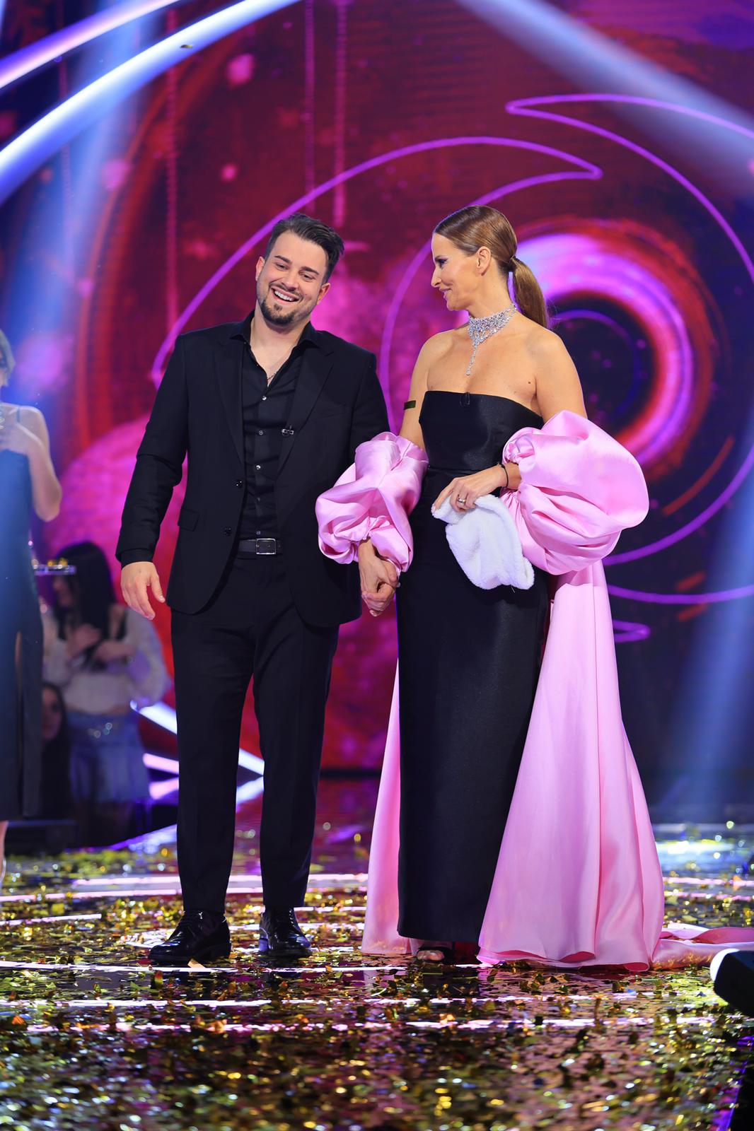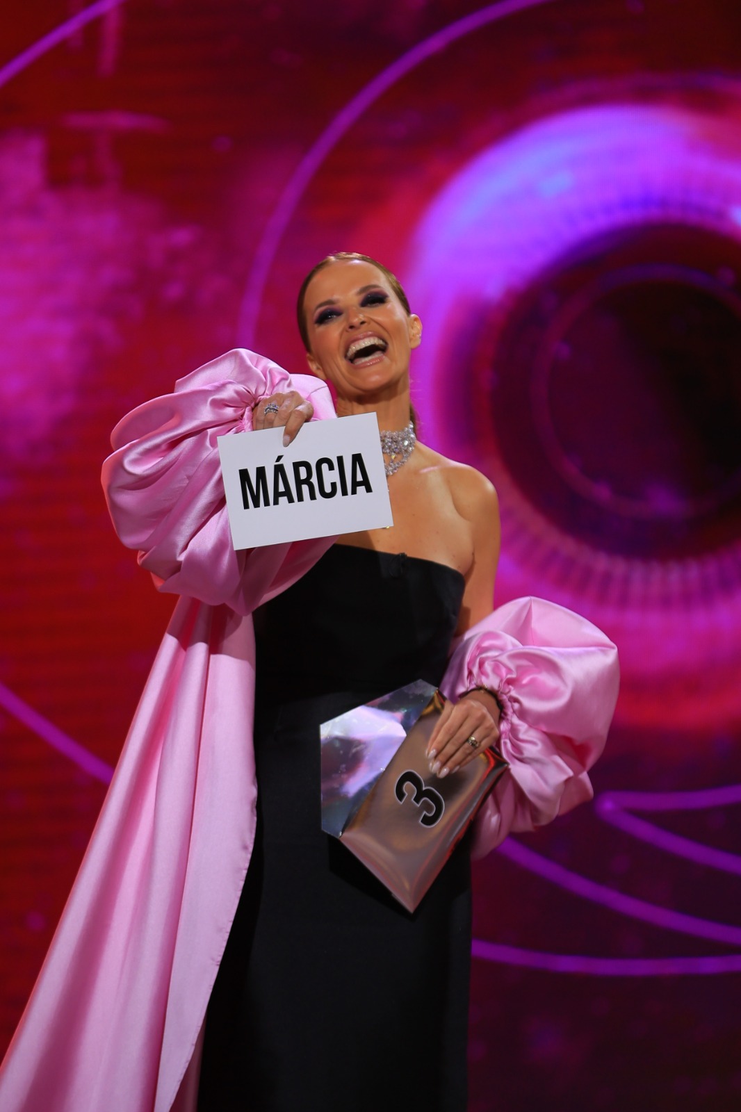Para a grande final, Cristina Ferreira escolheu um vestido preto cai-cai até aos pés com uma cauda cor-de-rosa e umas mangas em formato balão, na mesma cor. Gostou da escolha para a última gala do ano?