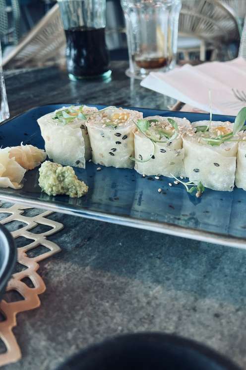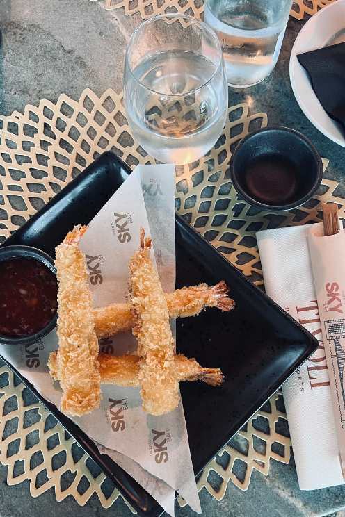 À chegada, pedimos uma bebida. A escolha não foi fácil. A carta completa incluí desde cocktails tradicionais, cocktails de assinatura, espirituosas, cervejas, vinhos e champagnes. Para o pairing perfeito, um sushi para partilhar – um dos melhores da cidade – e umas sandwiches. Terminámos com uns churritos com chocolate e doce de leite. Um sonho!