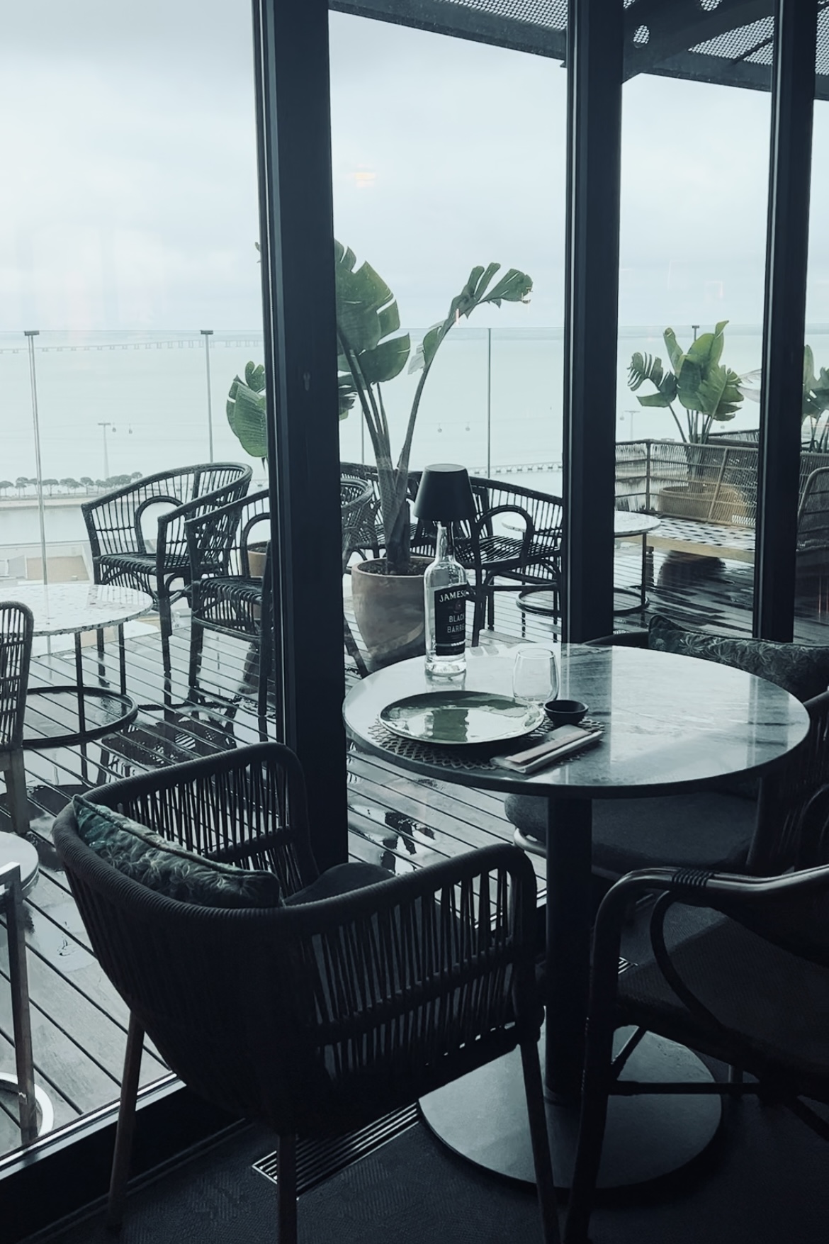 Ao passar as janelas envidraçadas, é no exterior que o espaço mais surpreende. Um rooftop panorâmico, com uma zona central coberta para os dias menos convidativos. Com vista 360 graus sobre o Rio Tejo e o Parque das Nações, é possível avistar-se, de uma das varandas, a ponte Vasco da Gama e os vários edifícios deixados pela Expo’98, como o Museu Ciência Viva, o Oceanário, o Pavilhão de Portugal, o Altice Arena, a FIL e ainda o teleférico. Do outro lado, para quem prefere uma paisagem mais urbana, uma esplanada no sentido oposto, onde é possível desfrutar de um pôr-do-sol sobre a zona oriental da cidade e a icónica Gare do Oriente.