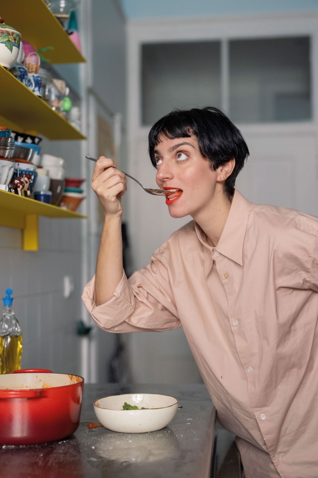 «Para abril, eis a prova de que é fácil fazer as receitas que me chegaram envoltas em enorme abstração, como gnocchi. Vi-os primeiro em ementas de restaurantes italianos, depois comecei a vê-los em pacotes, nos supermercados. Até que, um dia, decidi aventurar-me nesta aparentemente simples arte de fazer gnocchi. Confecionar gnocchi não é nada difícil; e os que são feitos em casa sabem muito melhor do que os de compra e, naturalmente, que os dos restaurantes. Porquê? Ah, simples! Porque fui eu que os fiz! Para abril, uma receita pintada de vermelho, carregada de liberdade, porque saber é poder.»