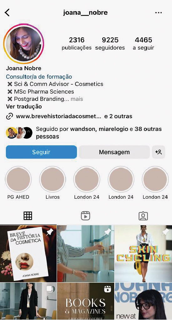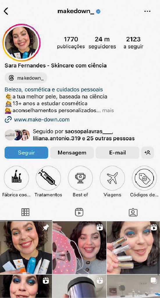 produtos. O termo inglês significa isso mesmo, “cuidados com a pele”. Este é um dos estrangeirismos que adotamos como nosso e é usado, sobretudo, entre as gerações mais novas. As redes sociais vieram tornar global a ideia de que a pele requer cuidados específicos, e aproximou-nos de vários especialistas, que nos influenciam e instruem a saber mais sobre a pele e sobre cosmética: são os chamados skinfluencers, a nova geração de especialistas cujo foco é a beleza aliada à ciência.