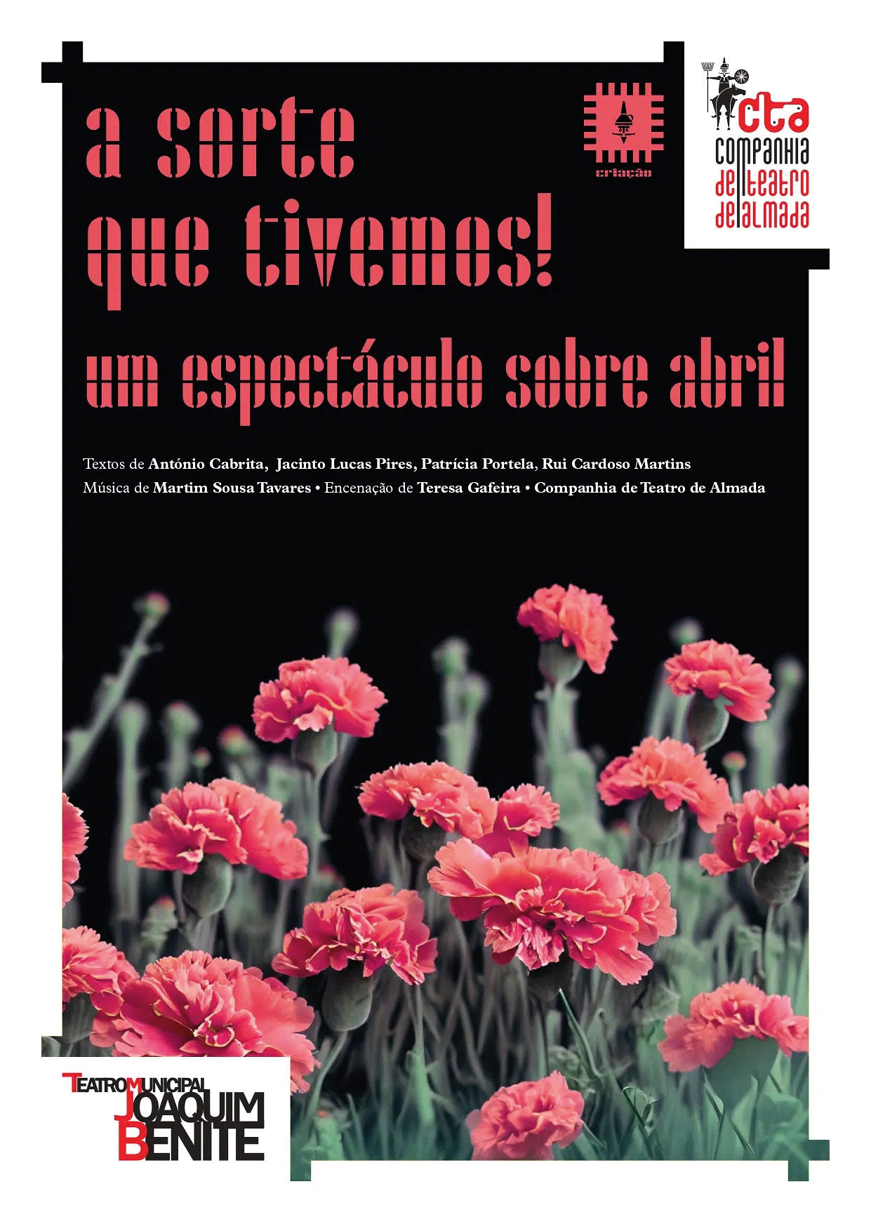 12/04 a 05/05, às 21 horas, sobe ao palco do Teatro Municipal Joaquim Benite, em Almada, a Companhia de Teatro de Almada, com a peça A Sorte Que Tivemos! Um espetáculo sobre Abril. Uma história contada para aqueles a quem Abril soa a uma coisa do antigamente.